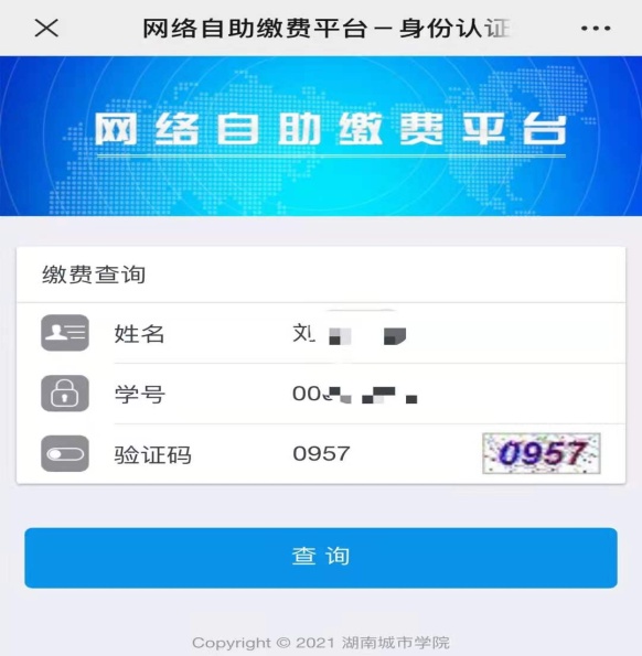 4.按步骤输入姓名、学籍号、验证码,进入缴费页面缴费。